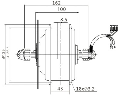 High Speed Brushless Motor Hub (V/Disc Brake) Type: DGW07C-FA Specification: 16’’~28’’ Spoke hole: 36Holes Voltage: 24V, 36V Rated power: 180W,250W,350w Efficiency (%) ≥82% Cable side : Right Magnet rate: 16Poles,20Poles Reduction gear ratio: 1:4.3 Fork size: 100mm Inside speed sensor: 1 Hall sensor: With Brake: Disc brake/V-brake Classification of waterproof: IP54 Weight: 3.3Kg