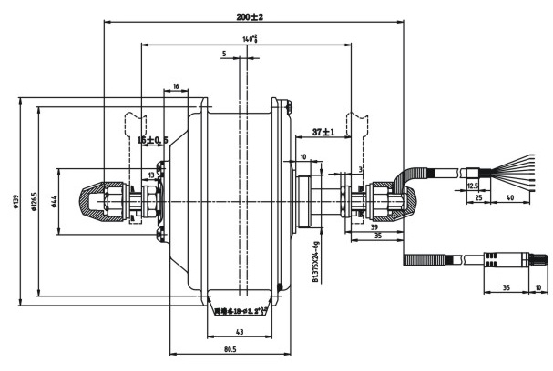 High Speed Brushless Motor Hub (V/Disc Brake) Type: DGW07C-MD Specification: 16’’~28’’ Spoke hole: 36Holes Voltage: 24V, 36V Rated power: 180W,250W Efficiency (%) ≥82% Cable side : Right Magnet rate: 16Poles,20Poles Reduction gear ratio: 1:4.3 Fork size: 100mm Inside speed sensor: 1 Hall sensor: With Free wheel: Screw6-7S Brake: Disc brake/V-brake Classification of waterproof: IP54 Weight: 3.4Kg
