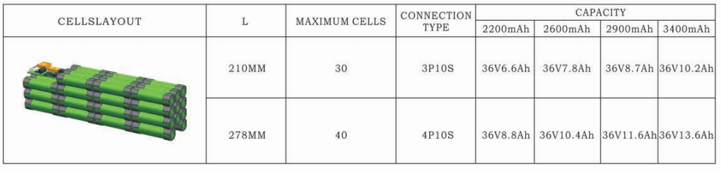 40PCS 18650 Cylinder cells, capacity 36V8Ah-13.6Ah